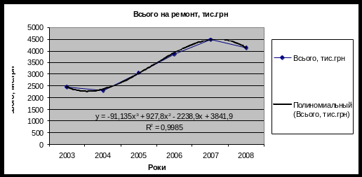 Рис.4 Графік витрат на ремонти (2003-2008 рр.)