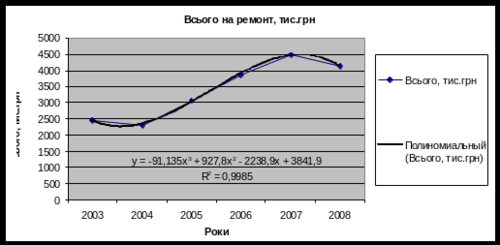 2.1 Прогнозування загальних витрат підприємства та витрат на ремонт на 2008 рік
