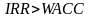 3) Внутрішня ставка (норма) доходності (IRR). Показник внутрішньої норми дохідності характеризує максимально прийнятний відносний рівень витрат, які можуть бути здійснені при реалізації певного проекту. Показник, що визначає відносний рівень цих витрат, називається вартістю авансованого капіталу, або WACC. Відомо, що при фінансуванні проекту з різноманітних джерел цей показник визначається за формулою середньої арифметичної зваженої.