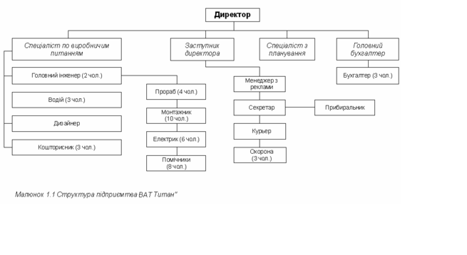 На Малюнку 1.1 наведена організаційна структура підприємства "Титан", що діяла на підприємстві в 2007 році.