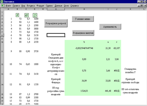 За даними узятим із вихідних даних робляться наступні розрахунки: знаходяться коефіцієнти регресії (рис. 3.4);