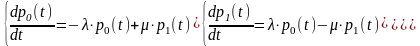 где po(t) и p1(t) – вероятности нахождения СМО в состояниях So и S1 соответственно. Уравнения для финальных вероятностей po и p1 получим, приравнивая нулю производные в первых двух уравнениях системы. В результате получим: