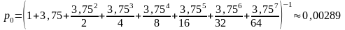 Наивероятнейшее состояние – оба канала СМО заняты и заняты все места в очереди.