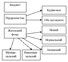 До бюджету здійснюються податкові і неподаткові надходження від населення, підприємств і житлового фонду. Бюджетні кошти використовуються на соціальне забезпечення населення, на утримання і розвиток житлового фонду, на створення міського замовлення будівельним підприємствам. Населення проживає в житловому фонді, створює попит на послуги будівельних підприємств, купуючи у власність об'єкти житлового фонду Підприємства роблять послуги населенню, будуючи новий житловий фонд, обслуговуючи населення і житловий фонд.