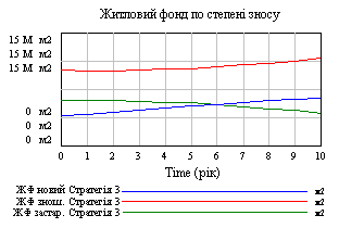 Рисунок 3.2 - Темпи будівництва житлового фонду при 3 стратегіях