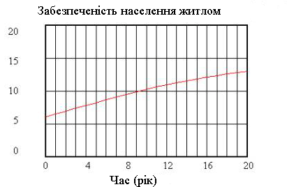 З приведеного графіка забезпеченості населення житлом видно, що стратегії дуже схожі між собою, якщо судити по динаміці тільки цього показника. Тому питання про найраціональнішу стратегію залишається відкритим. Опиратися тільки на цей показник при прийнятті рішень було б необгрунтовано. Необхідно взяти до уваги динаміку інших показників, щоб добитися ефективного функціонування галузі.