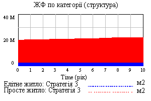 Стратегія №3 «Будуємо і ремонтуємо» (середня лінія) займає проміжне положення між першими двома стратегіями. Об'єм побудованого житла поступово зменшується, починаючи з великих величин.