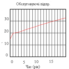 Як видно з графіка, кількість обслуговуючих підприємств при стратегії “Будуємо і ремонтуємо” в перші 5 років стрімко росте. Це пояснюється браком обслуговуючих підприємств на даний час. У наступні 10 років кількість цих підприємств збільшується поступово.