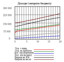 Рисунок 3.9 – Доходи і витрати бюджету при стратегії 3.
