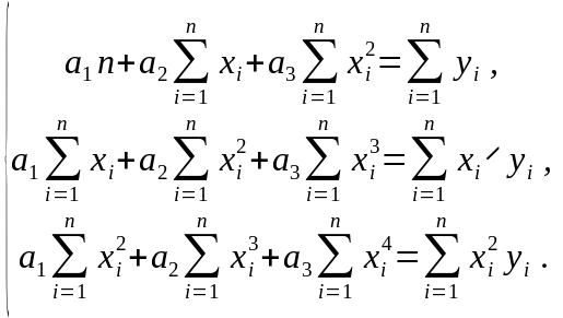 , которые доставляют минимум функции S , определяемой формулой (2), используем необходимое условие экстремума функции нескольких переменных - равенство нулю частных производных. В результате получим нормальную систему для определения коэффициентов