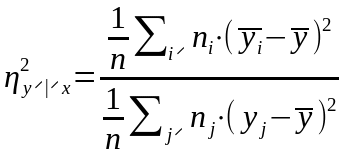 Корреляционное отношение является мерой корреляционной связи y с x в какой угодно форме, но не может дать представления о степени приближенности эмпирических данных к специальной форме. Чтобы выяснить насколько точно построенная кривая отражает эмпирические данные вводится еще одна характеристика коэффициент детерминированности.