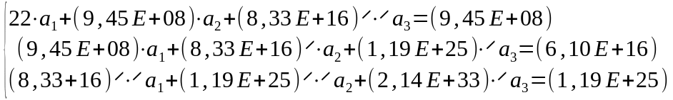 решив которую, получаем а1 = 114949314, а2 = -3,46784603, а3 = 2,0307E-08.