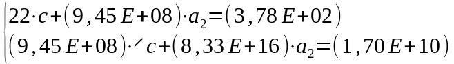 Решив систему, найдем с = 16,45413618, а2 = 1,71028E-08.