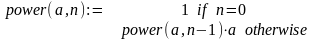 Решение. Приведенная ниже функция power(a,n) дает решение задачи за n рекурсивных вызовов: