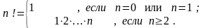 Решение. Для целых неотрицательных чисел n факториал n обозначается через n! и определяется так: