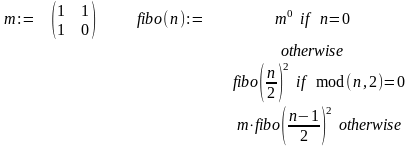 Отметим, что теперь количество рекурсивных вызовов для fiboo(n) имеет порядок равный log2(n) и, скажем, fiboo(200) в символьной форме вычисляется практически мгновенно.