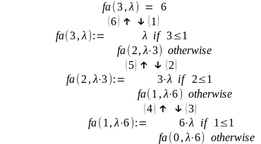 Используем теперь для вычисления n! cформулированную выше схему 3 (обобщить). Если вместо исходной функции facto(n)=n!, ввести в рассмотрение функцию двух переменных fa(n, )=n! (n=0,1,…), то получим равенства: