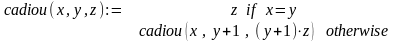 Решение. При y=0 и z=1 имеем z=y!. Далее из характера декомпозиции функции cadiou() ясно, что z=y! остается инвариантом в ходе рекурсивных вызовов. Вместе с условием завершения x=y это и дает z=x! и (7) установлено.