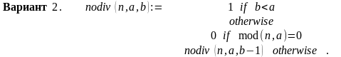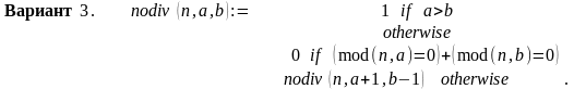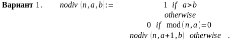 Ниже приведено три рекурсивных варианта реализации этой функции. По первому из них проверке на делитель n последовательно подвергаются числа: a, a+1, … , b; по второму эти же числа в обратном порядке и, наконец, по третьему a, b, a+1, b1, … .
