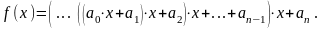 Вычисление f(x) в точке x по схеме Горнера проводится от самых внутренних скобок и далее в соответствии с представлением: