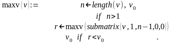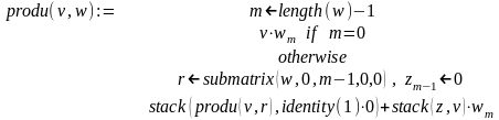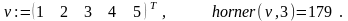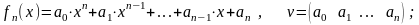 Замечание. Параметр n – это константа, равная степени многочлена. По вектору v она определяется однозначно. Однако в каждом рекурсивном вызове проводится перевычисление n. Избежать лишней вычислительной работы в подобных ситуациях можно двумя способами. Или определять такие константы заранее вне текста программы-функции или передавать их значения через дополнительные аргументы функции.