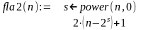 Отсюда получаем еще один рекурсивный алгоритм для вычисления чисел Флавия (см. ниже). При этом вспомогательная рекурсивная функция power(n,0) вычисляет значение s, удовлетворяющее соотношению (18), то есть уменьшенное на 1 количество цифр двоичного разложения n, а функция fla2(n) непосредственно вычисляет число Флавия для заданного n.