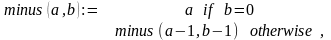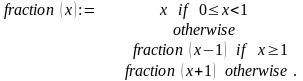 Замечание. Моделирование различных операций возможно не только для целых неотрицательных чисел. Их можно было бы определить и для множества всех целых чисел и даже для множества вещественных чисел. Ограничимся рассмотрением одного примера. Напишем рекурсивную программу-функцию нахождения дробной части вещественного числа, если разрешены лишь операции x+1 и x1. Вот один из возможных достаточно ясных вариантов её определения: