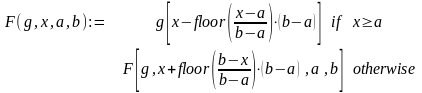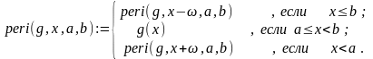 Заметим, что при x находящемся вдали от промежутка [a,b) вычисления значения функции peri() требует значительного количества рекурсивных вызовов. Происходит это по той причине, что за один такой вызов мы продвигаемся в направлении [a,b) лишь на расстояние =ba.