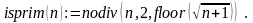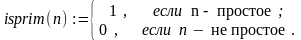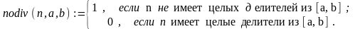, поэтому характеристическая функция isprim(n) через функцию nodiv(n,a,b) может быть выражена так: