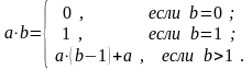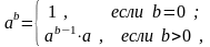 D. Возведение в степень: ab (a0). Будем считать, что операция умножения уже определена. Тогда: