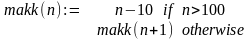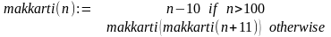 В первом из них в силу базы рекурсии следует, что makkarti(n)=n10. Во втором случае: