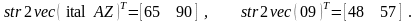 Решение. Будем считать, что речь идет о версиях Фортрана, где идентификатор определялся как последовательность из шести заглавных латинских букв и (или) цифр, начинающаяся с буквы и для символов была принята ASCII кодировка. Превратить последовательность символов в вектор соответствующих им ASCII-кодов можно с помощью встроенной функции str2vec(). Например: