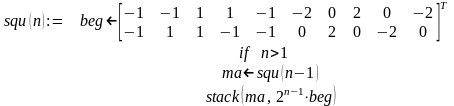 , получим матрицу точек для 2n таких квадратов. Соответствующая рекурсивная функция, базирующаяся на этих фактах, может выглядеть так: