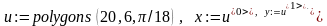 Прежде всего, составим программу, которая формирует массив вершин правильного n-угольника, вписанного в окружность радиуса r и содержащего вершину (rcos() rsin()). Сделать это можно, например, так: