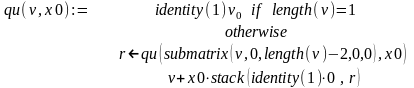 Отсюда вытекает, что c = qu(v,x0), где рекурсивное определение функции qu() может выглядеть, например, так.