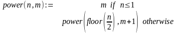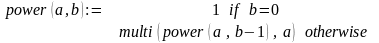 то вполне можно организовать рекурсию по параметру m степени второго сомножителя. И в качестве решения может быть предложена следующая функция: