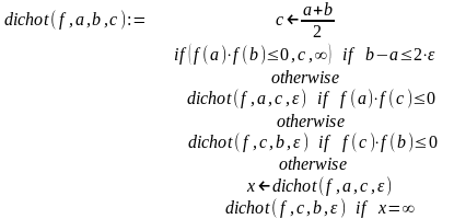 dichot(y,1,7,0.001)=10307 , dichot(f,2.17,3,0.0001)=2.18 .