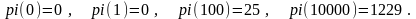 Решение. С помощью функций nodiv() или isprim() рекурсивный вариант функции pi(x) строится достаточно просто, исходя из такого декомпозиционного утверждения. Количество простых чисел, не превосходящих x, составляется из количества простых чисел меньших или равных x1 плюс значение функции isprim(x). Поэтому: