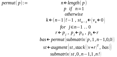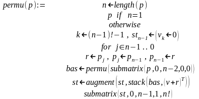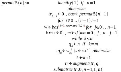 Описанный алгоритм вертикальной прогонки реализуется рекурсивной программой-функцией permut1(n):