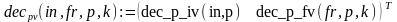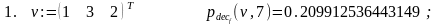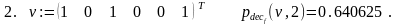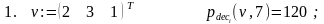 Решение. Функция dec_p_fv(v,p,k) осуществляет перевод v в p-ичную систему счисления. Результат вычислений формируется, начиная от старших разрядов и далее, в виде вектора длины не более k, компоненты которого суть p-ичные цифры исходного числа. Функция dec_p_fv(v,p,k) отличается от ранее рассмотренной функции dec_p_f(v,p,k) лишь формой представления первого аргумента. Поэтому её вычисление можно свести к вычислению dec_p_f(v,p,k) с предварительным обращением к рекурсивной функции dv_normf(v), переводящей десятичную дробь из векторного представления в нормальную форму. Это и сделано ниже.