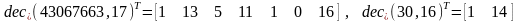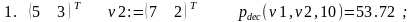 Решение. Функция dec_pv(in,fr,p,k) решает поставленную задачу, осуществляя перевод десятичного числа a в p-ичную систему счисления. Результат вычислений формируется в виде составного вектора. Компоненты этого вектора снова векторы, содержащие соответственно цифры целой и дробной частей числа a в p-ичной системе счисления. Цифры целой и дробной части a возвращаются, начиная со старших разрядов и далее. В дробной части присутствует не более чем k (k=1,2,...) цифр. При вычислениях функция dec_p() обращается к двум рекурсивным функциям dec_p_iv() и dec_p_fv().