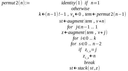 Описанный алгоритм последовательного замещения реализуется рекурсивной программой-функцией permut2(n):