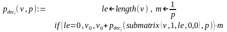 Решение. Функция p_dec_f(v,p) решает поставленную задачу, используя рекурсивный алгоритм последовательного умножения. Результат формируется в естественной форме.