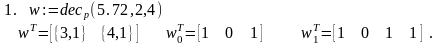 Решение. Функция dec_p(a,p,k) решает поставленную задачу, осуществляя перевод десятичного числа a в p-ичную систему счисления. Результат вычислений формируется в виде составного вектора. Компоненты этого вектора снова векторы, содержащие соответственно цифры целой и дробной частей числа a в p-ичной системе счисления. Цифры целой и дробной части a возвращаются, начиная со старших разрядов и далее. В дробной части присутствует не более чем k (k=1,2,...) цифр. При вычислениях функция dec_p() обращается к двум рекурсивным функциям dec_p_i() и dec_p_f().
