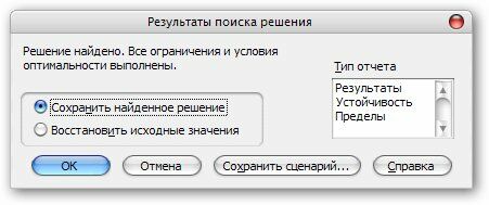 Мощным средством анализа данных MS Excel является надстройка Solver (Поиск решения). С ее помощью можно определить, при каких значениях указанных влияющих ячеек формула в целевой ячейке принимает нужное значение (минимальное, максимальное или равное какой-либо величине). Для процедуры поиска решения можно задать ограничения, причем не обязательно, чтобы при этом использовались те же влияющие ячейки. Для расчета заданного значения применяются различные математические методы поиска. Вы можете установить режим, в котором полученные значения переменных автоматически заносятся в таблицу. Кроме того, результаты работы программы могут быть оформлены в виде отчета.