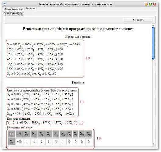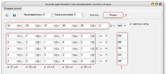 Перейдем к конкретному случаю. В нашем случае выполняется условие допустимости базиса, так как b=(600, 590, 750, 670, 495)T<0 и bi<0 (i=6,…,10).