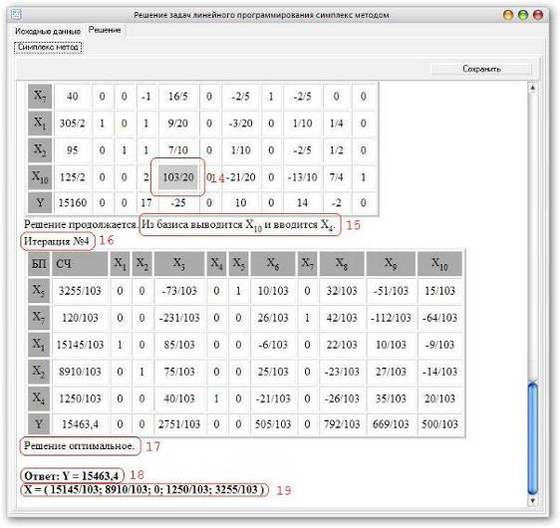 Каждая симплекс-таблица анализируется по критериям допустимости и оптимальности базиса.