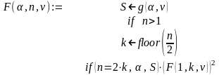 где действительное число, n натуральное число, v=(v1,v2,…,vs) T вектор с числовыми компонентами, g(,v) функция, значения которой для и v из области определения F(,n,v) мы вычислять можем. Тогда рекурсивная программа-функция: