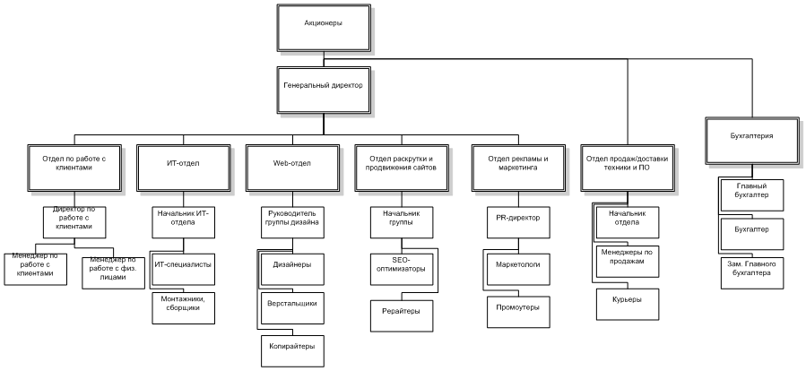 Все сотрудники компании согласно своей профессиональной квалификации закреплены за отдельными департаментами с четко определенными обязанностями и полномочиями.