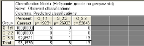 Класифікація діє кращим чином для вибірки, по якій була проведена оцінка дискримінуючої функції отже вирахуємо її і зобразимо у табл. 3.9.